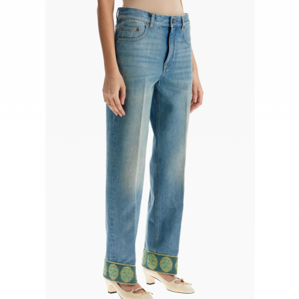 발렌티노 자카드 트림 청바지