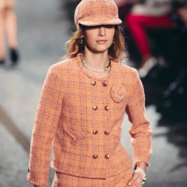 샤넬 핑크 체크무늬 트위드 자켓