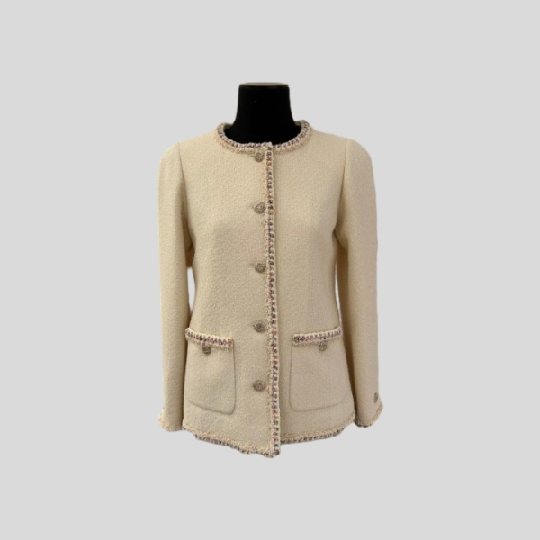 샤넬 크림 옐로우 트위드 재킷