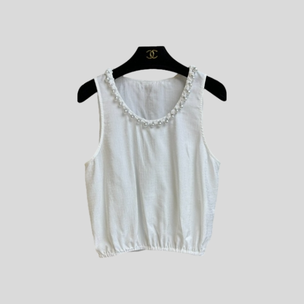 샤넬 진주 슬리브리스 탑