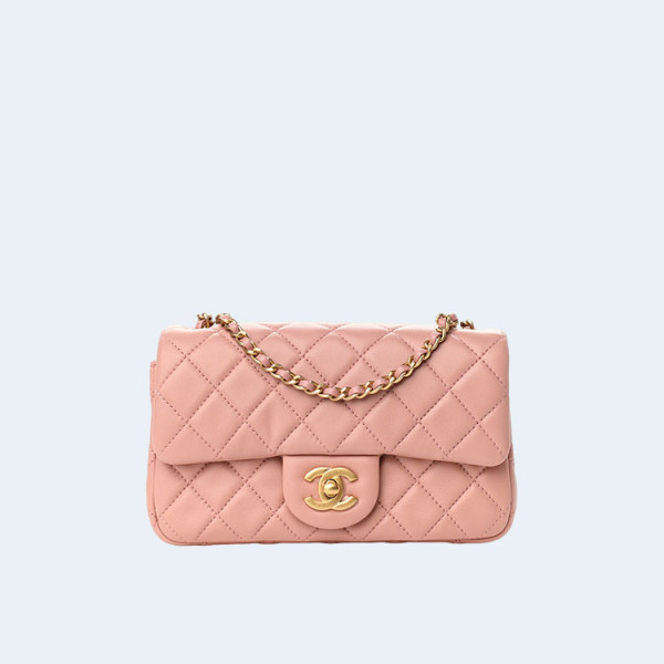 샤넬 램스킨 쁘띠삭 플랩백 핑크 골드 미니