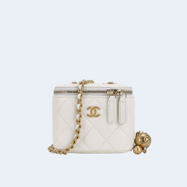 샤넬 스몰 체인 코스메틱 램스킨 화이트