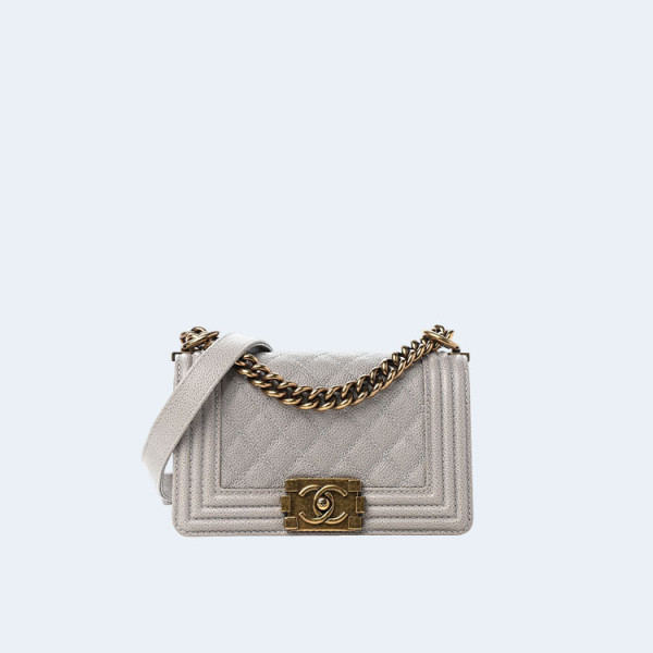 샤넬 보이백 스몰 카프스킨 그레이 골드
