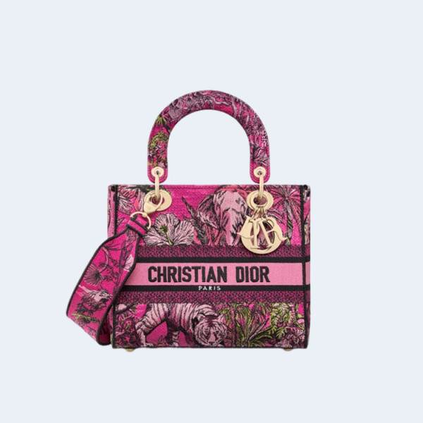 디올 레이디 D-Lite 푸시아 멀티 컬러 미디움 백