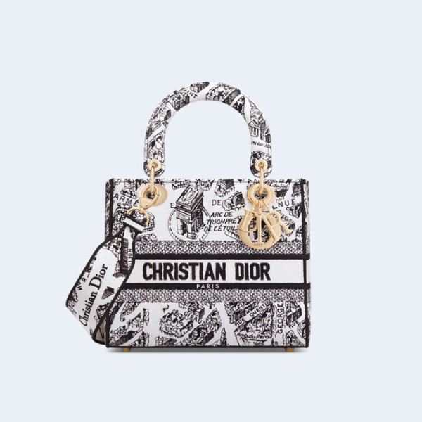 디올 레이디 D-Lite 플랜 데 파리 미디움 백 블랙