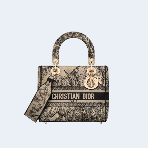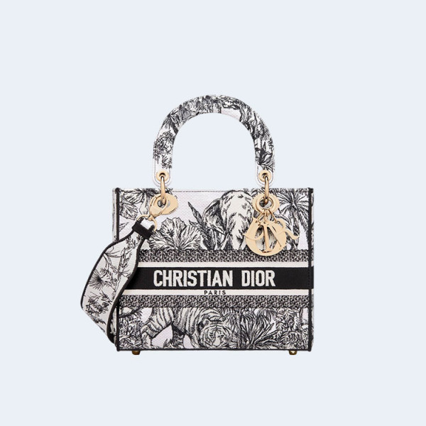 디올 레이디 D-Lite 패브릭 멀티 컬러 미디움 백