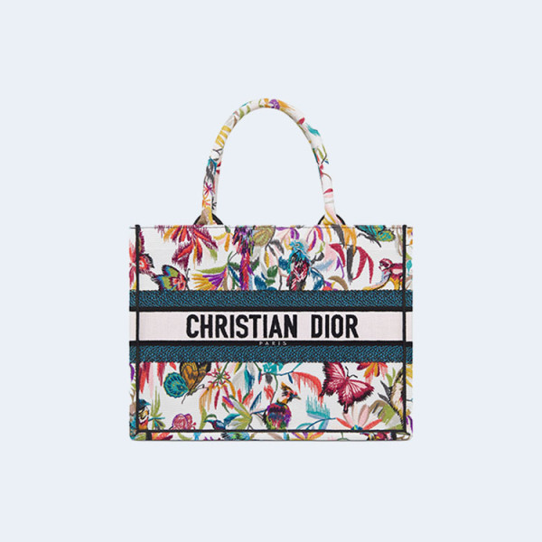 디올 북 화이트 멀티 컬러 자수 토트 미디엄 백