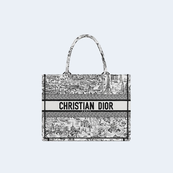 디올 북 토트 화이트 블랙 파리 자수 미디엄 백