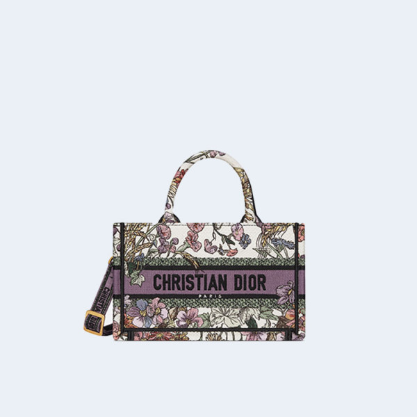 디올 북 화이트 멀티 컬러 자수 토트 미니 백