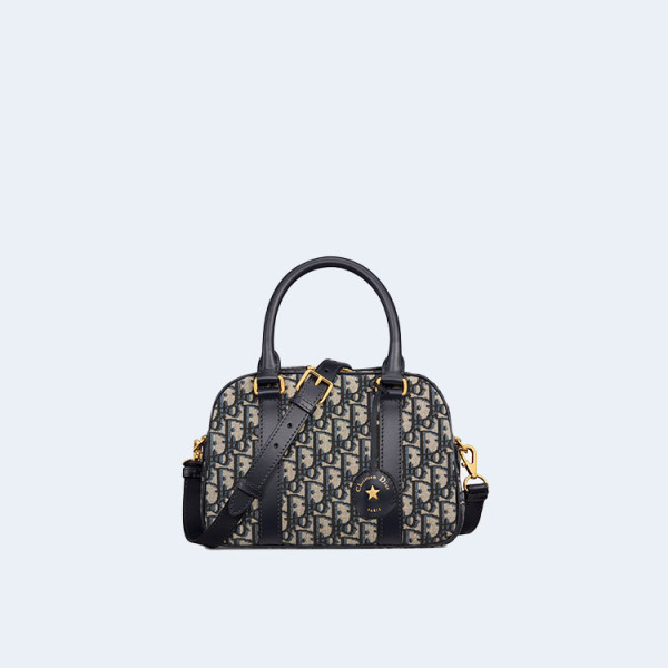 디올 디바이브 블루 오블리크 자카드 미디엄 볼링백