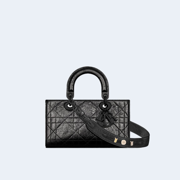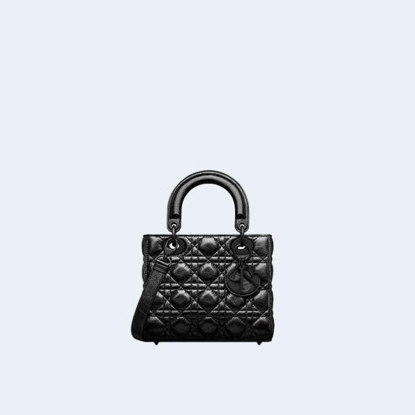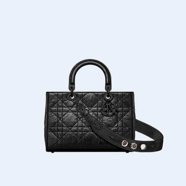 디올 레이디 Dior 블랙 크링클 까나쥬 미디엄 백