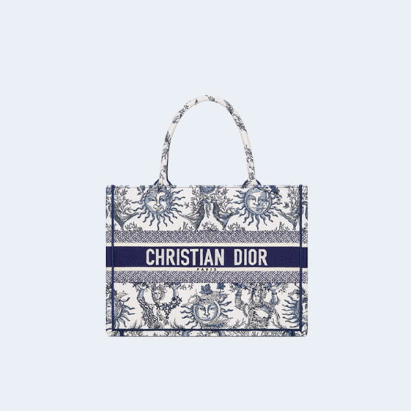 디올 북 화이트 네이비 자수 토트 미디엄 백