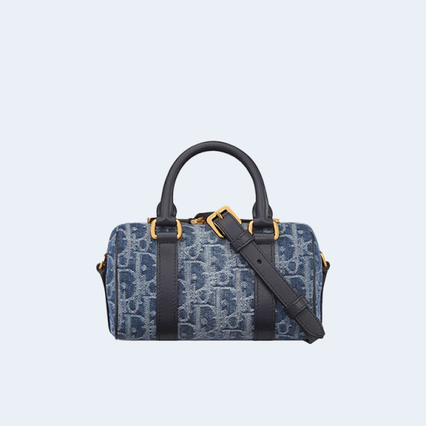디올 오블리크 자카드 그루브 25 백 데님 블루