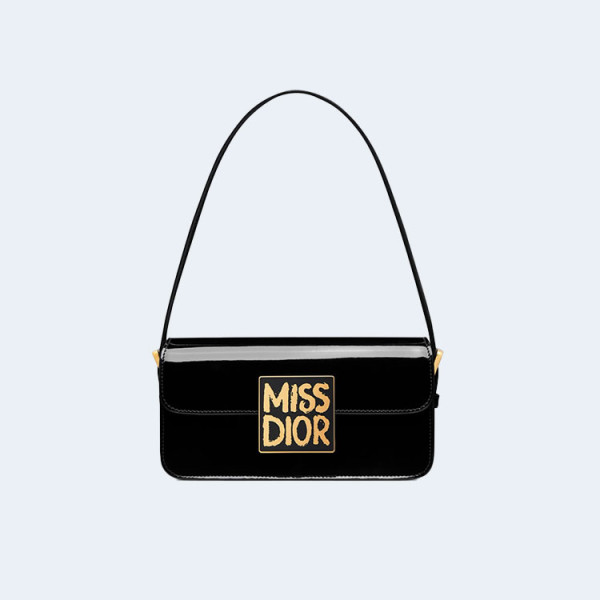 디올 미스 플랩백 블랙 페이턴트