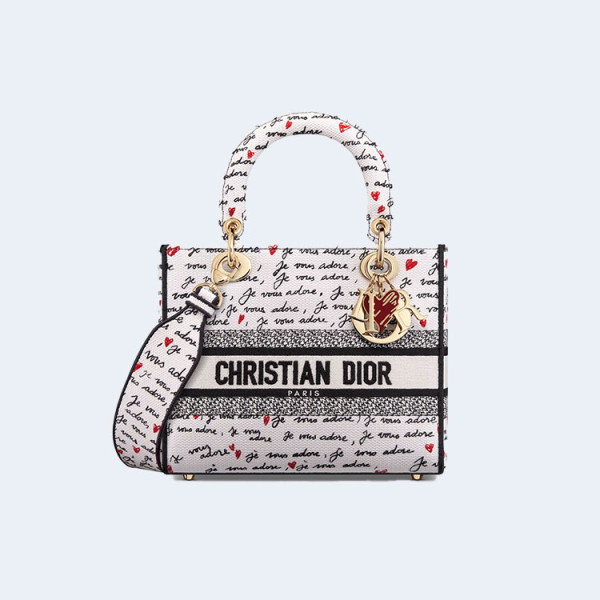 디올 아무르 레이디 D-Lite 미디엄 백 화이트,블랙 앤 레드