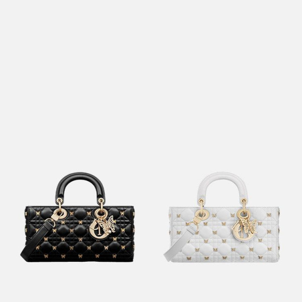 디올 LADY D-JOY 골드 피니시 나비 스터드 미디엄 백
