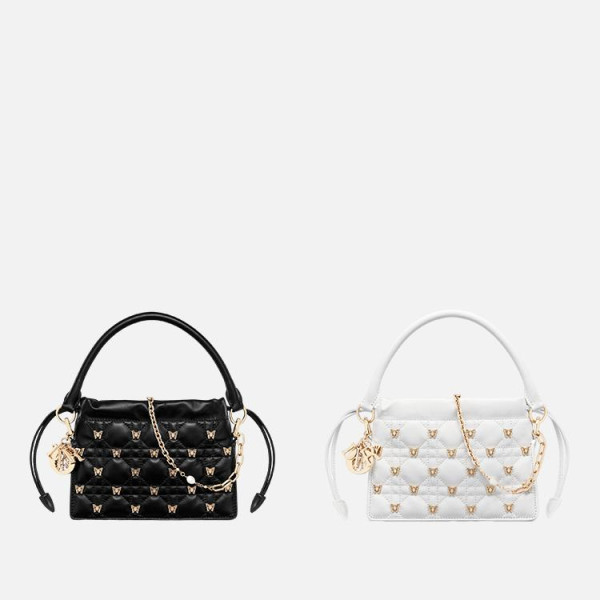 디올 LADY DIOR MILLY 골드 피니시 나비 스터드 스몰 백