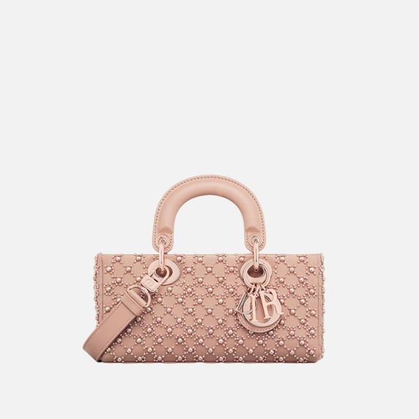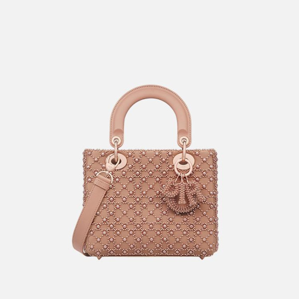 디올 LADY DIOR 카프스킨 핑크 스톤 마이크로 백