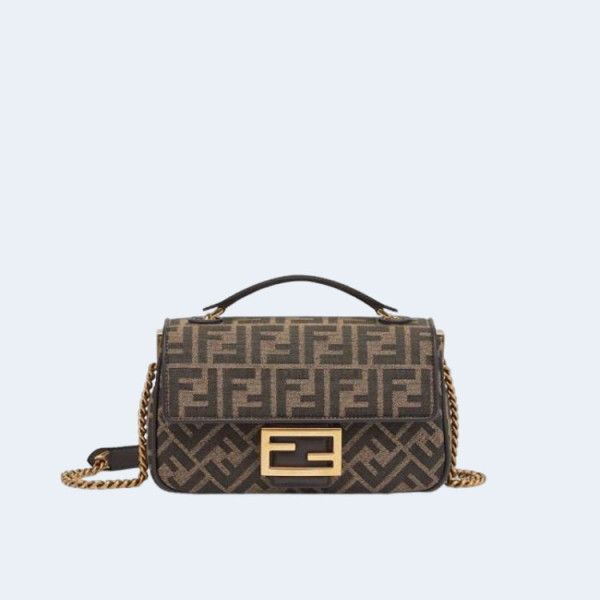 펜디 바게트 자카드 패브릭 미디엄 체인 백
