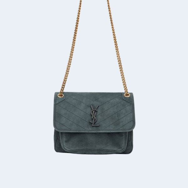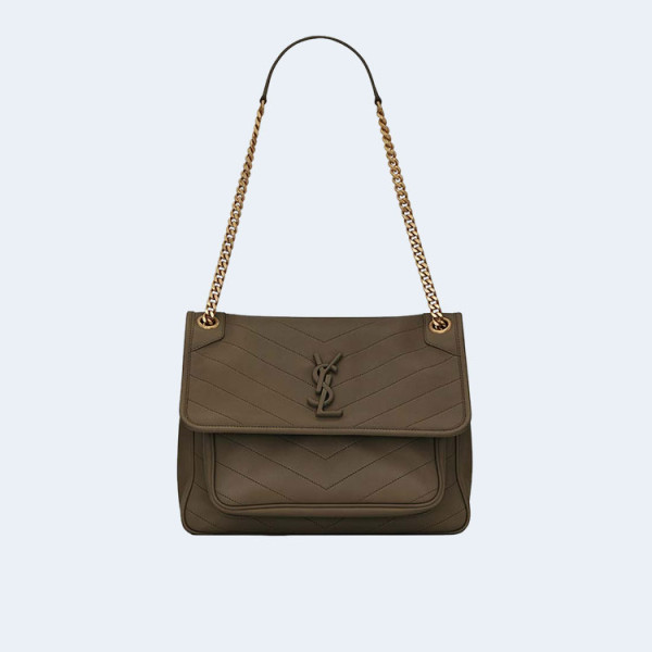 생로랑 니키 스웨이드 미디움 체인백 카키