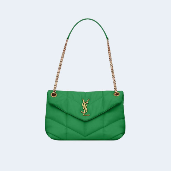 생로랑 모노그램 PUFFER 레더 숄더백 그린 골드