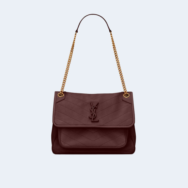 생로랑 니키 스웨이드 미디움 체인백 와인