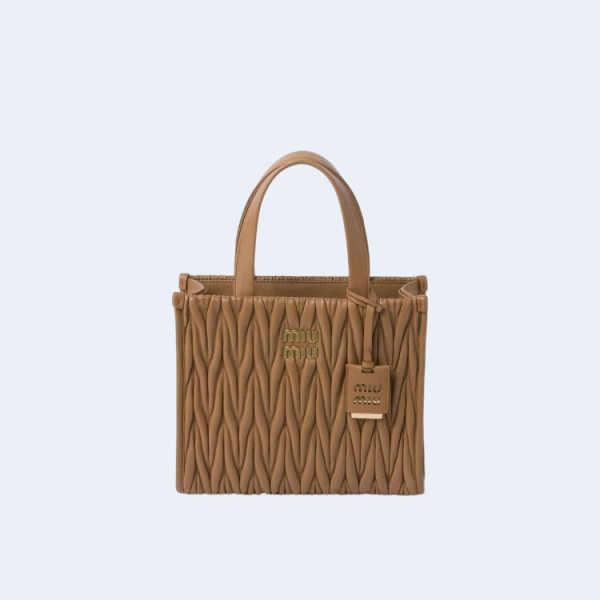 미우미우 마테라쎄 나파 가죽 토트백 브라운