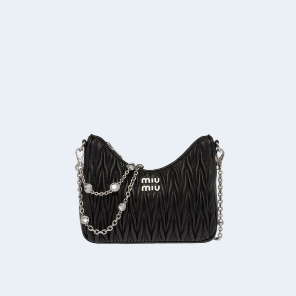 미우미우 마테라쎄 나파 가죽 숄더백 크리스탈 블랙