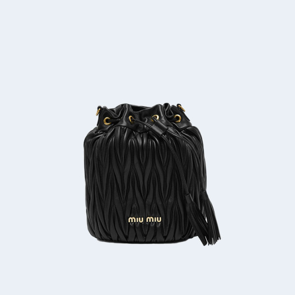 미우미우 마테라쎄 나파 가죽 버킷백 블랙