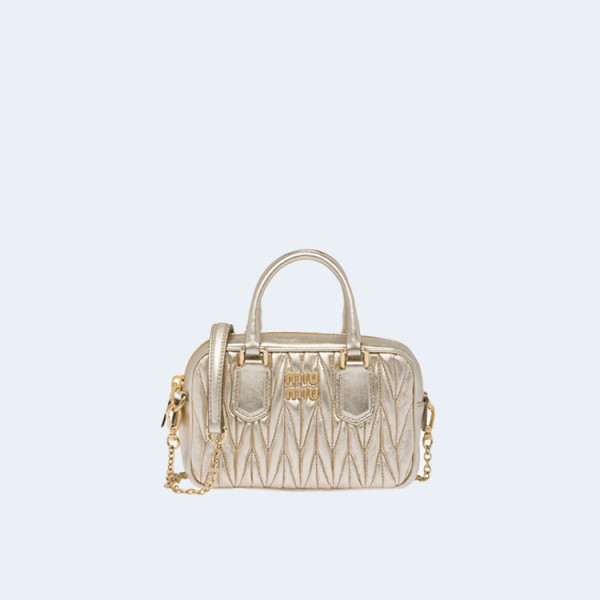 미우미우 마테라쎄 나파 가죽 탑 핸들 미니백 골드