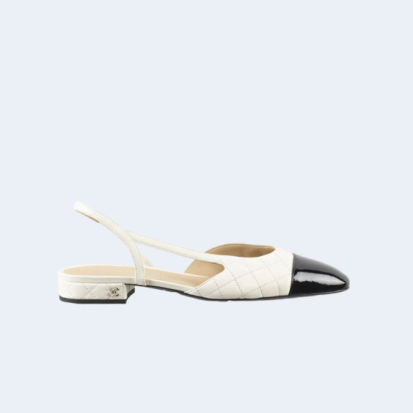 샤넬 슬링백 램스킨 페이턴트 카프스킨 화이트 블랙