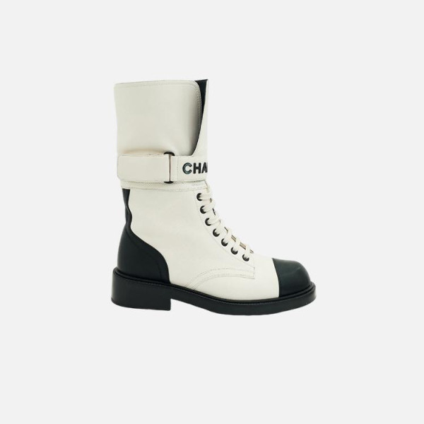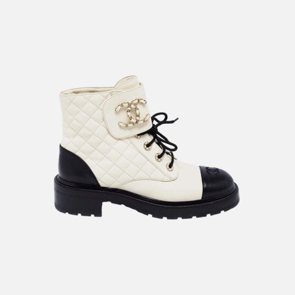 샤넬 레이스업 퀼팅 컴뱃 부츠 화이트