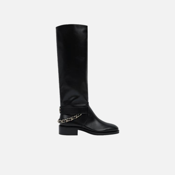 샤넬 하이 부츠 카프스킨 골드 메탈 & 블랙