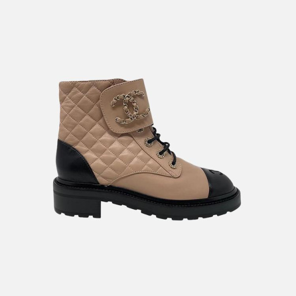 샤넬 레이스업 퀼팅 컴뱃 부츠 베이지