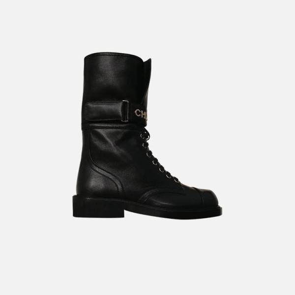 샤넬 레이스업 램스킨 카프스킨 부츠 블랙