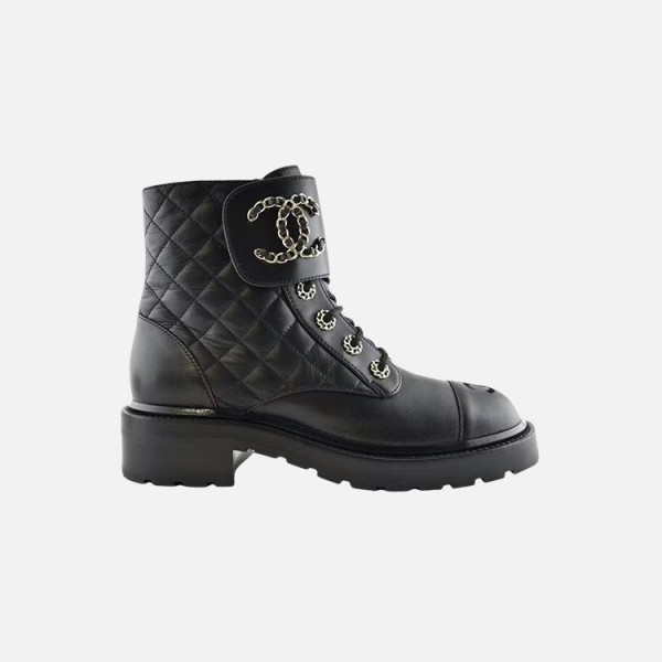 샤넬 레이스업 퀼팅 컴뱃 부츠 블랙