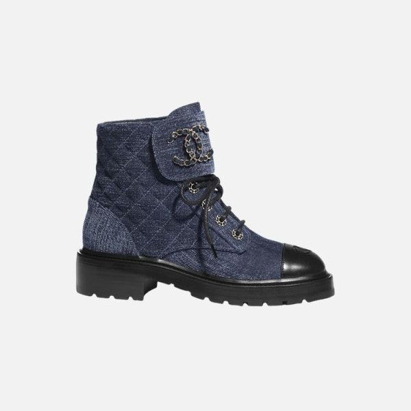 샤넬 레이스업 퀼팅 컴뱃 부츠 데님
