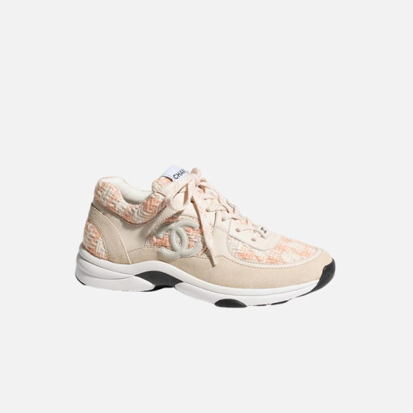 샤넬 CC 로고 트위드 스니커즈 핑크