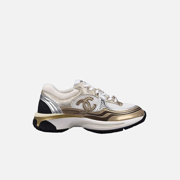 샤넬 CC 로고 샤식스 화이트 골드 테니스 스니커즈