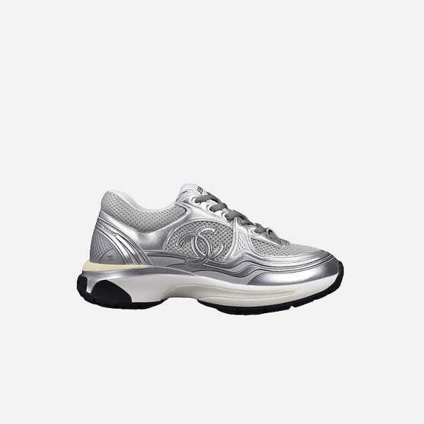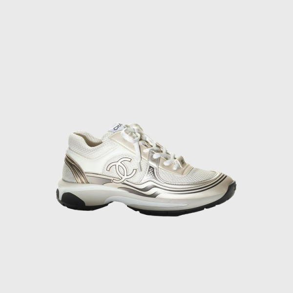 샤넬 패브릭 라미네이티드 화이트/실버 스니커즈