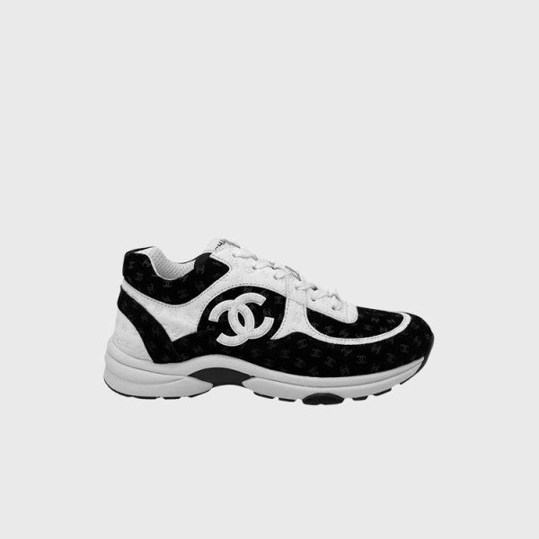 샤넬 메쉬 스웨이드 카프스킨 화이트/블랙 스니커즈