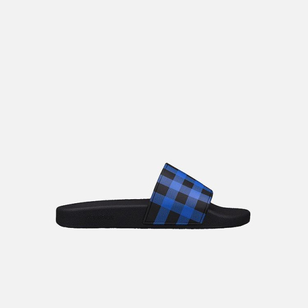 버버리 체크 프린트 블루 슬라이드