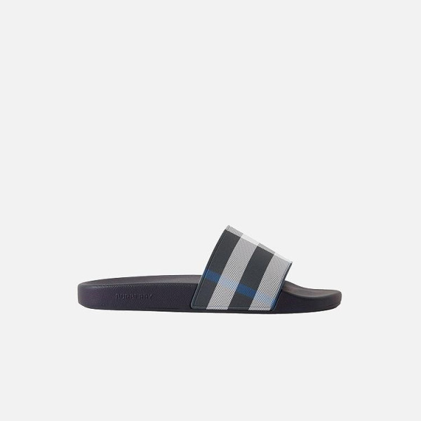 버버리 체크 프린트 다크 블루/화이트 슬라이드