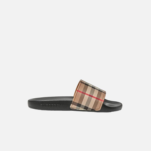 버버리 체크 패턴 프린트 베이지 슬라이드