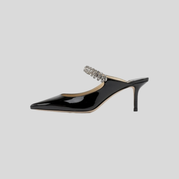 지미추 Naria 75 크리스탈 메쉬&레더 뮬