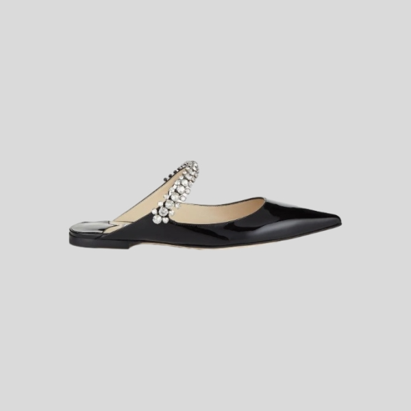 지미추 크리스털 스트랩 디테일 블랙 나파 가죽 슬리퍼 스니커즈